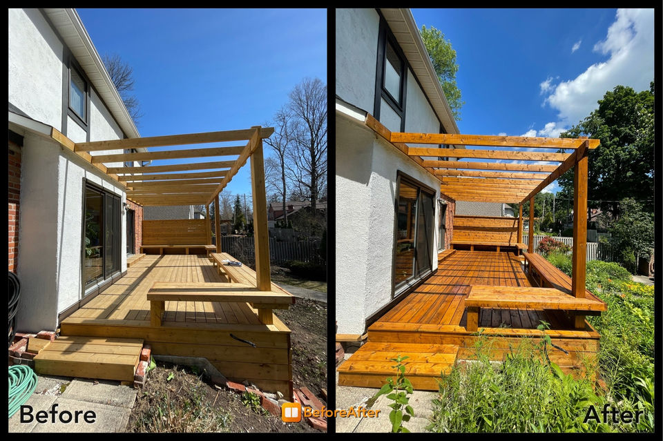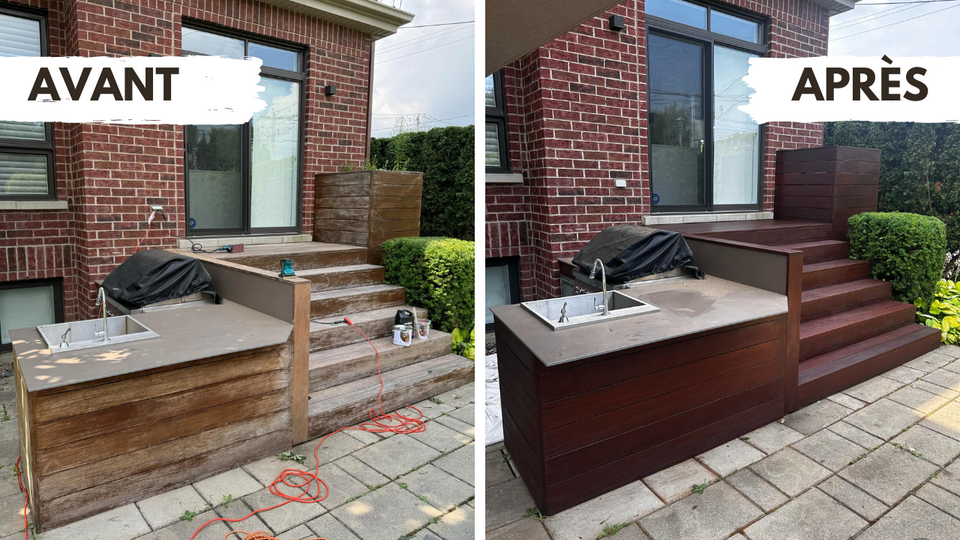 Nos services de teinture de terrasses sont conçus pour protéger et embellir vos espaces extérieurs. Nous utilisons des produits de haute qualité et effectuons en tout temps un sablage afin d'ouvrir les pores du bois, offrant une protection durable contre les intempéries.